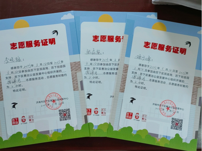 活动结束后,历下创益园向所有参加活动人员颁发志愿服务证书,并呼吁大家持续开展志愿服务活动、践行美德健康生活方式。