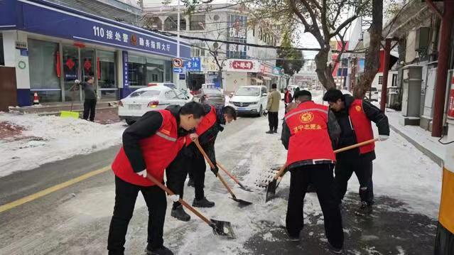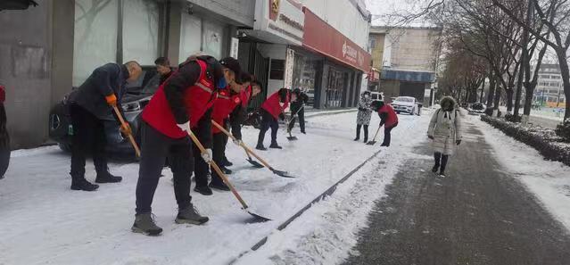 2月22日,在市区古槐路,市社会组织公益园党员和志愿者不畏严寒、团结协作、相互配合,手握扫把,抡起铁锹,挥着雪铲,全力清除着道路上的积雪和暗冰,极大地方便了行人车辆安全出行。志愿者们还走进古槐街道东门社区居民小区,对小区内主干道、户外广场和单元楼前的道路等积雪区域进行清扫,及时播撒融雪剂,为社区居民疏通了一条条温暖安心的出行路,“志愿红”忙碌的身影成为雪地中一道靓丽的风景线。