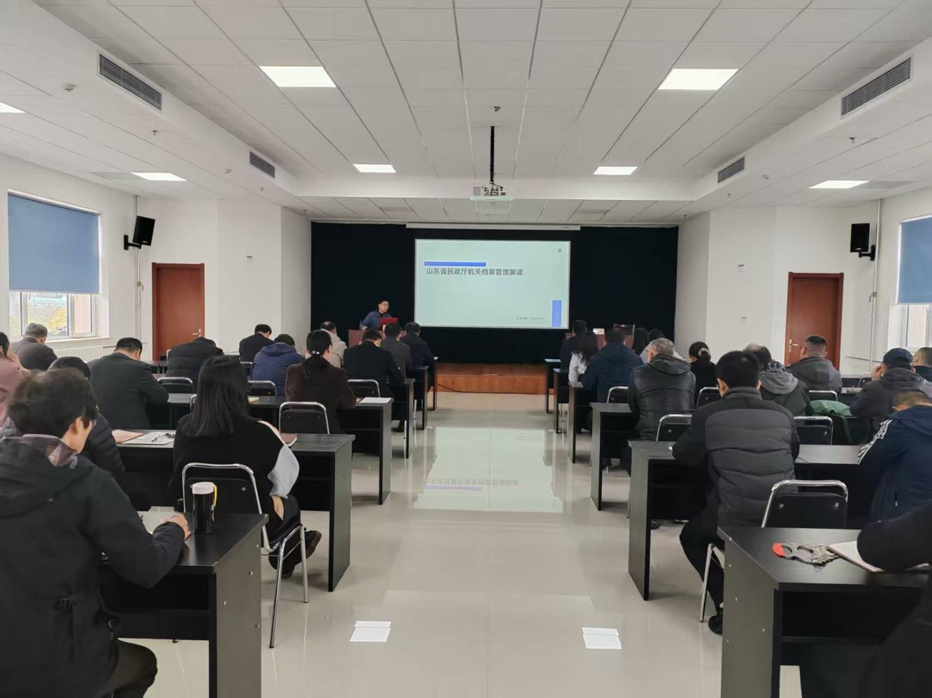 课堂上,侯旭系统讲解了《山东省民政厅机关档案管理办法》《厅机关档案归档整理流程》等内容,重点阐述了“应采尽采、应收尽收”原则,明确了职责分工、收集范围、分类标准、编号规则、装订要求、归档时限等关键内容,为规范档案管理提供了清晰路径和操作指南。