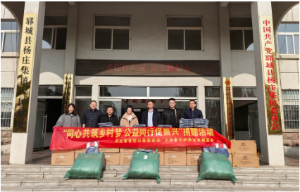 冬日暖阳,与爱同行。12月10日,山东省老龄事业发展基金会联合河北省普慈公益基金会、山东童善儿童福利公益发展中心、山东筑梦未来文化科技有限公司,共同向菏泽市郓城县杨庄集镇政府捐赠一批爱心物资,以实际行动支持省民政厅派驻第一书记当地公益事业,切实改善民生,传递社会温暖。