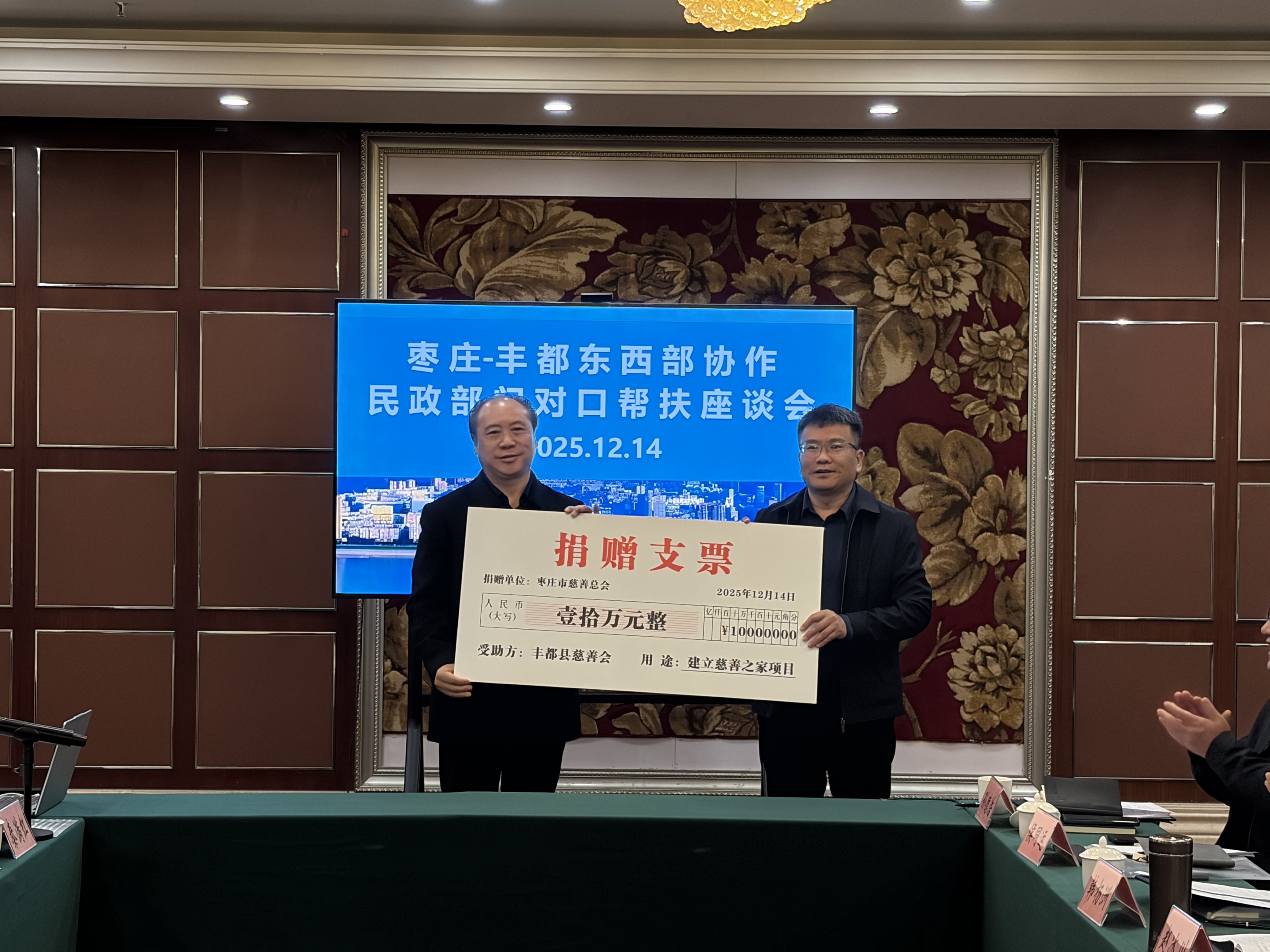 12月14日,枣庄·丰都东西部协作民政系统对口帮扶座谈会暨捐赠仪式在重庆市丰都县举行。