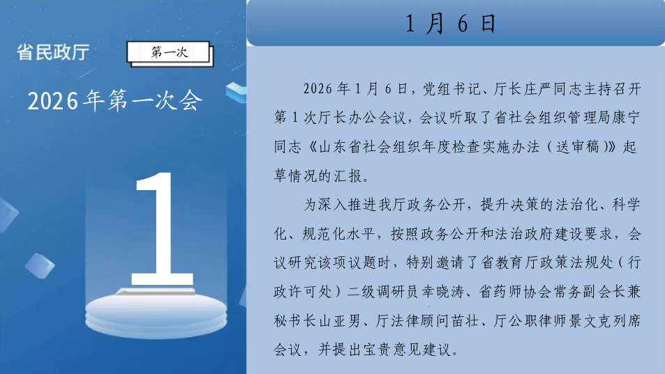 一图读懂:省民政厅召开2026年第1次厅长办公会议《山东省社会组织年度检查实施办法(送审稿)》起草情况的汇报
